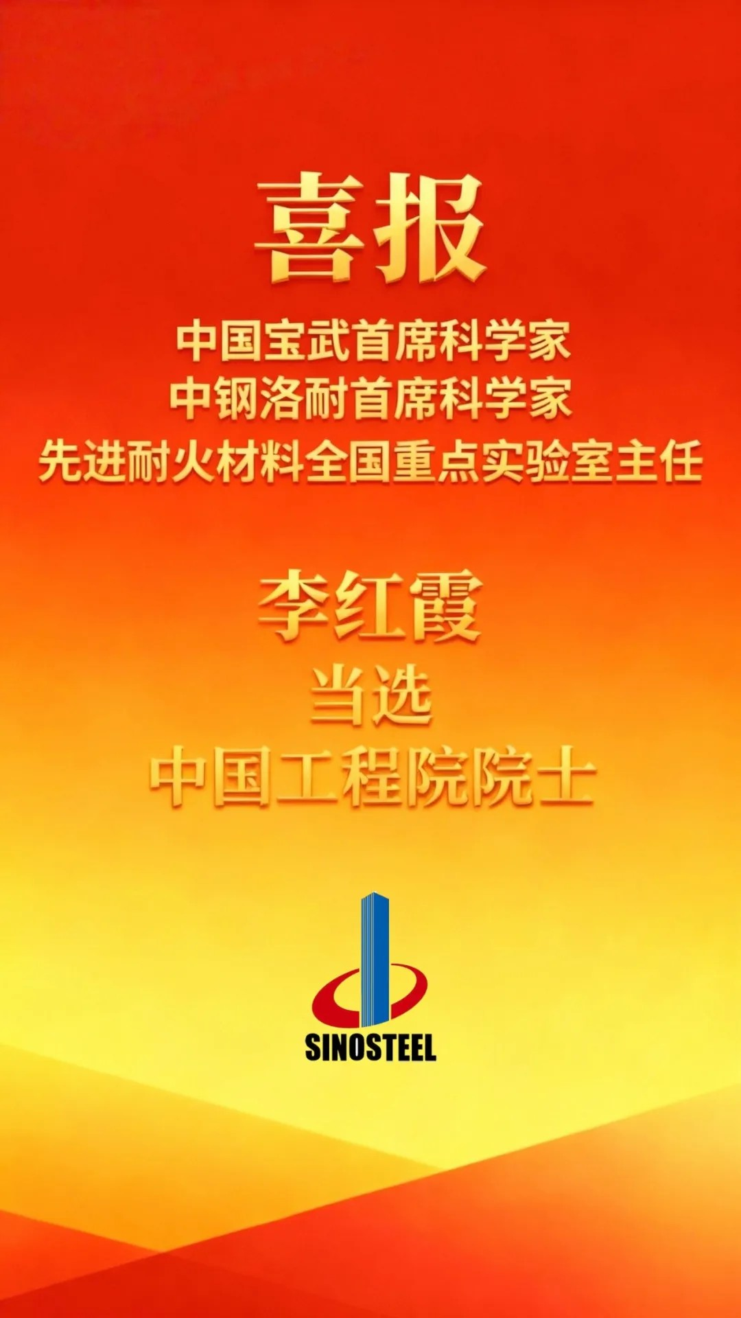 重磅喜訊!中國(guó)寶武首席科學(xué)家、中鋼洛耐首席科學(xué)家、先進(jìn)耐火材料全國(guó)重點(diǎn)實(shí)驗(yàn)室主任李紅霞,當(dāng)選中國(guó)工程院院士!